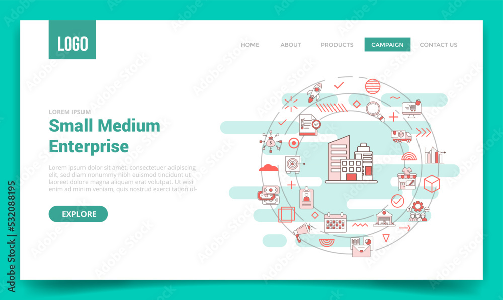 sme small medium enterprise concept with circle icon for website template or landing page homepage #532088195
