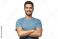 Smiling handsome man in blue t-shirt standing with crossed arms isolated #531378884