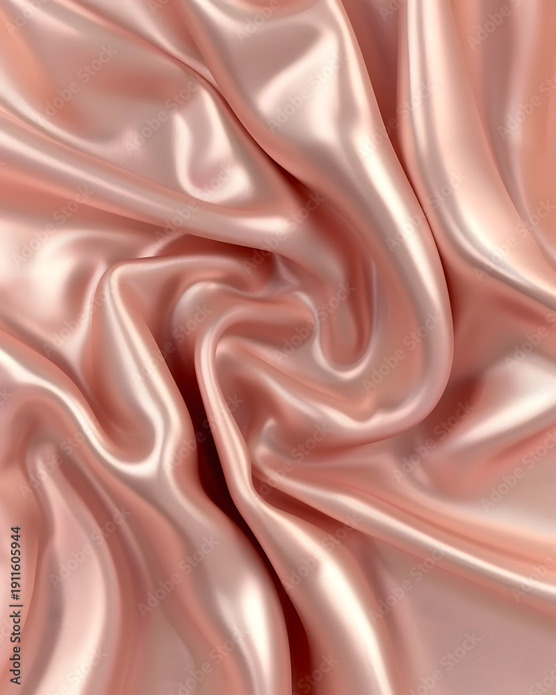 Smooth, glossy pink satin fabric draped and folded, showcasing intricate textures and reflections in a soft, elegant arrangement for textile design or fashion applications #1911605944