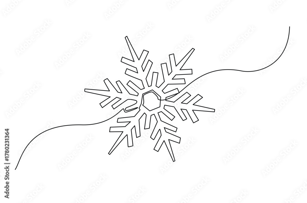 Snowflake in continuous one line drawing. Single line art illustration of snowflake element. Editable vector. #1780231364