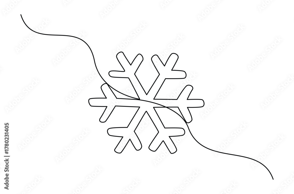 Snowflake in continuous one line drawing. Single line art illustration of snowflake element. Editable vector. #1780231405