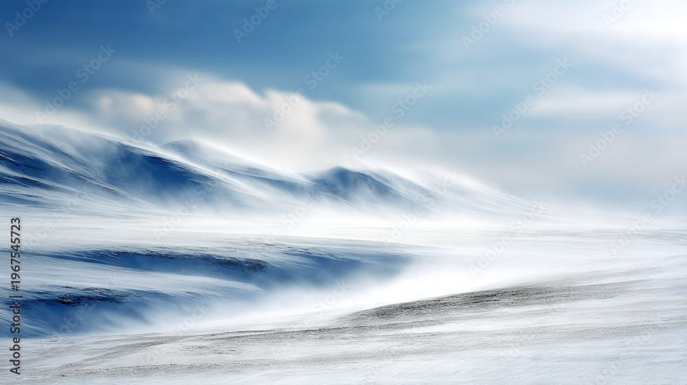 Snowy Mountain Landscape with Dramatic Clouds #1967545723