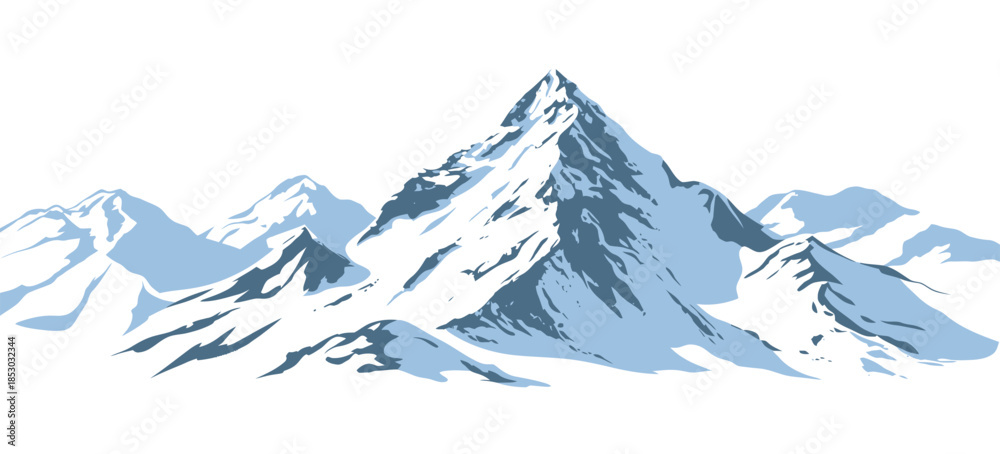 Snowy Mountains Vector Illustration with Winter Landscape, Ice Covered Peaks, Alpine Ridge, and Cold Nature Scenery Isolated on Transparent Background #1853032344