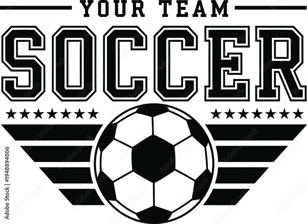 Soccer Team Typography Badge With Football Ball Illustration #1948894006