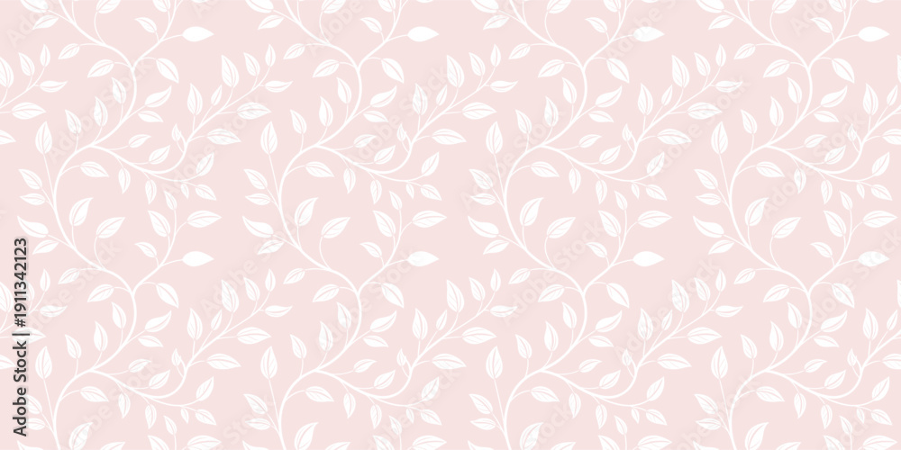 Soft blush botanical pattern with delicate swirling leaves creating a seamless pastel background. Elegant floral inspired design ideal for wallpaper, textile, packaging, and modern surface . #1911342123