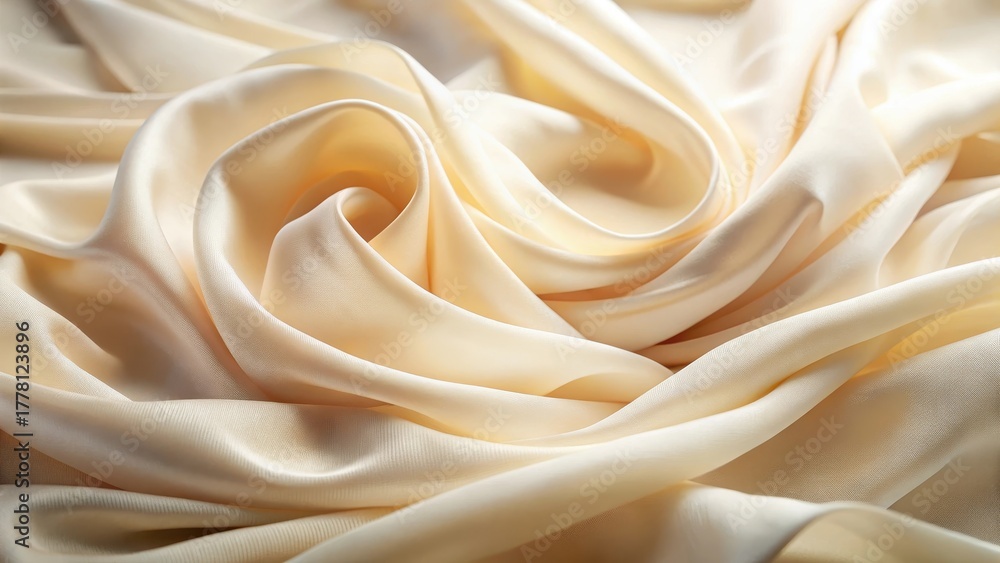 Softly draped cream-colored fabric with delicate folds against a calming background texture #1778123896