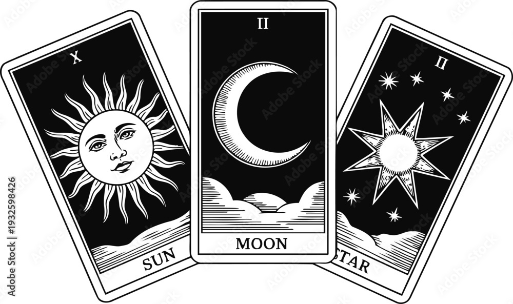 Solar moon and star tarot cards set mystical celestial symbols for divination and fortune telling #1932598426