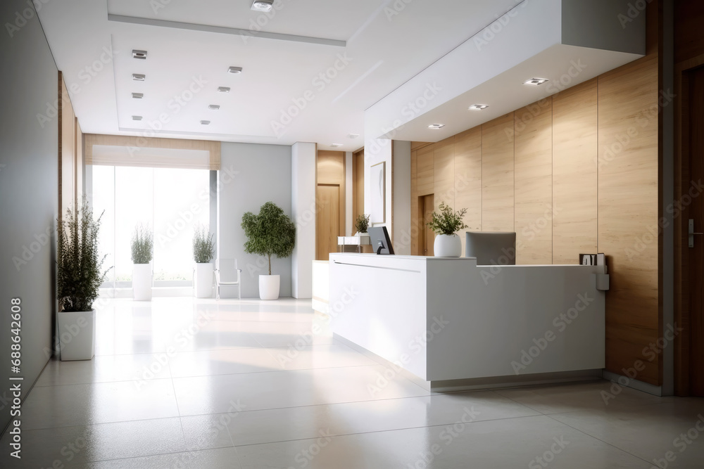 Spacious entrance area with counter of a modern office #688642608