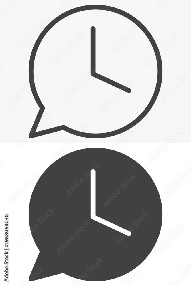 Speech Bubble Clock icon in line, outline and solid style. Editable stroke vector sign and symbol set for time use, with speech bubble clock icon in simple versions. #1968068048