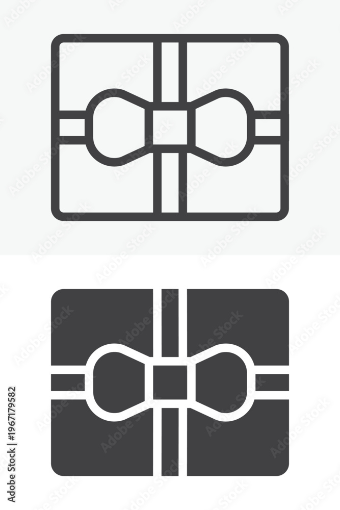 Square gift box with ribbon bow icon in line and solid styles. Outline and solid icon, editable stroke vector sign symbol. Square gift box icon for presents. #1967179582