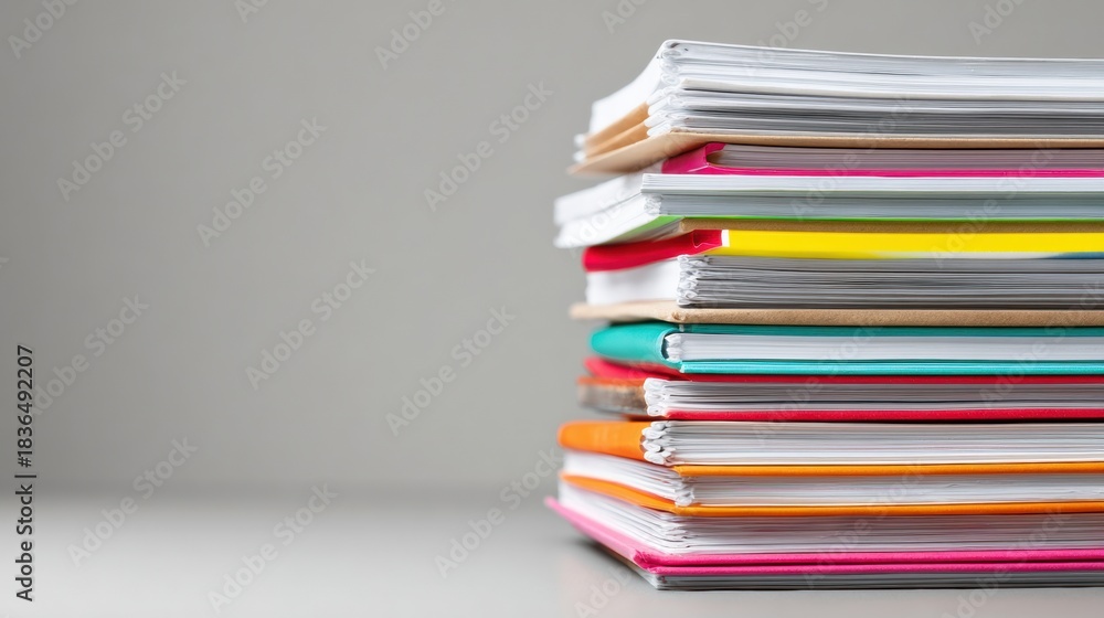 Stack of Academic Journals Arranged on a Neutral Background With Clear Space for Text and Visual Elements to Enhance Educational Material Design #1836492207