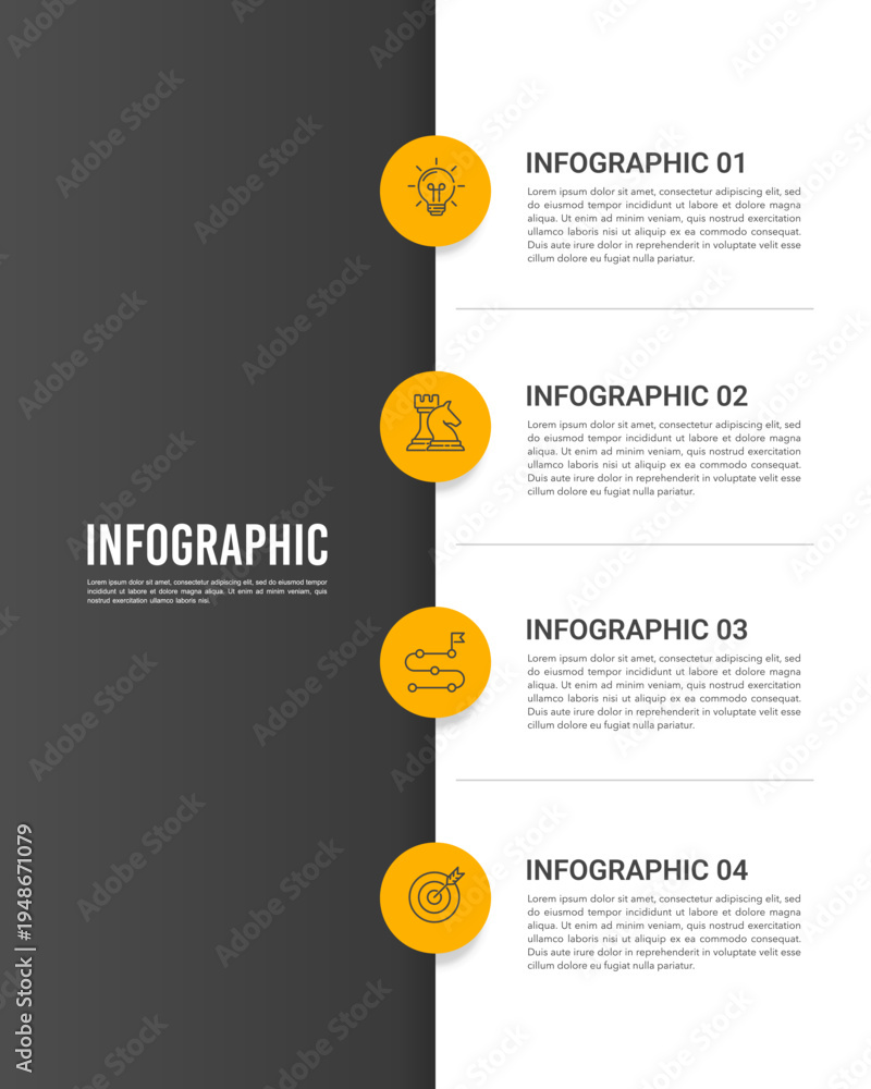 4 Steps Business Timeline Infographic with Elegant Black and White Split Design. Vector illustration. #1948671079