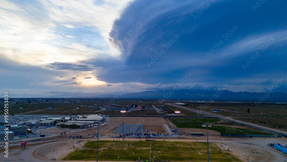 Stormy Dusk: Moody Sunset Over the High School Soccer Field #1950753836