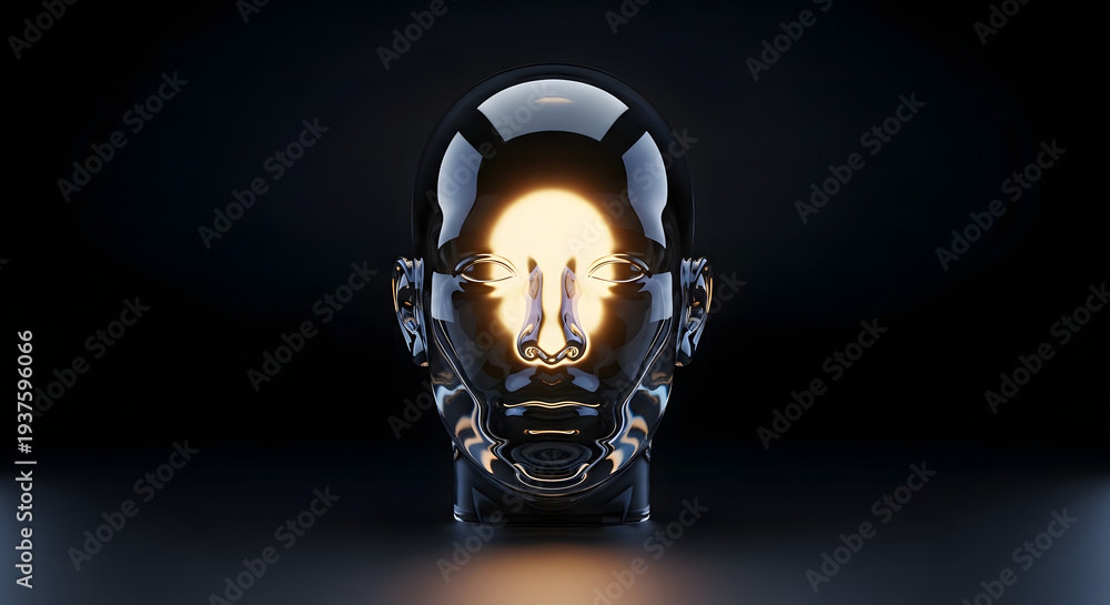 Striking 3D render of a luminous transparent human head, radiating inner light and symbolizing profound thought, brilliant ideas, and the essence of human intellect #1937596066