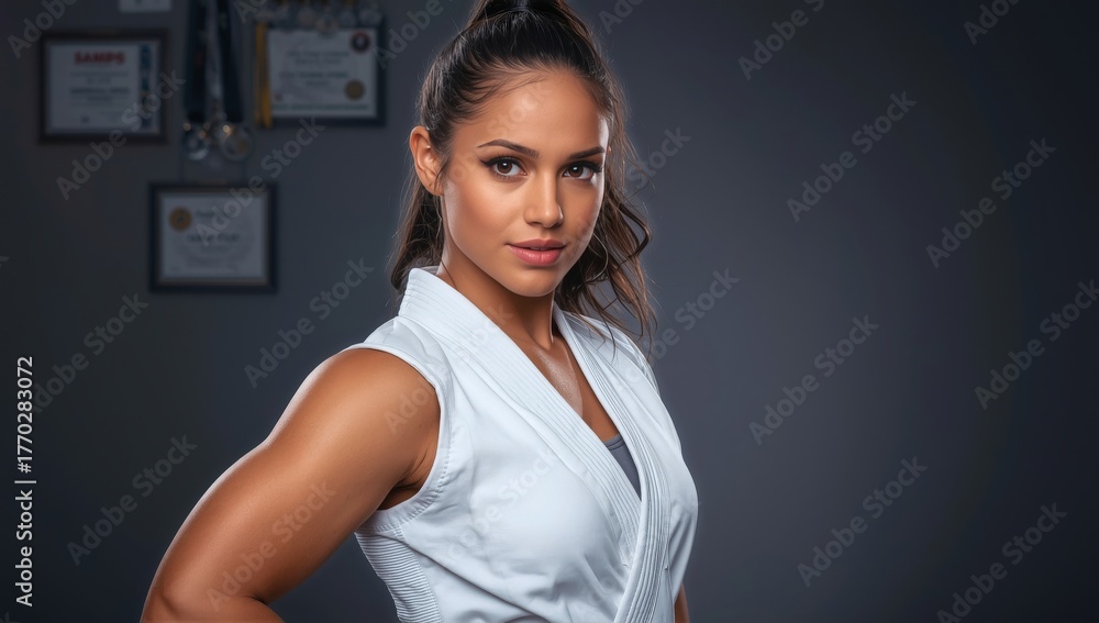 Strong Woman Posing Confidently in a Fitness Studio During a Workout Session #1770283072
