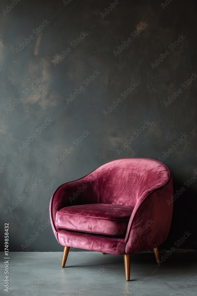 Stylish Pink Velvet Chair Against Textured Dark Wall in Modern Interior Design Setting #1749858432