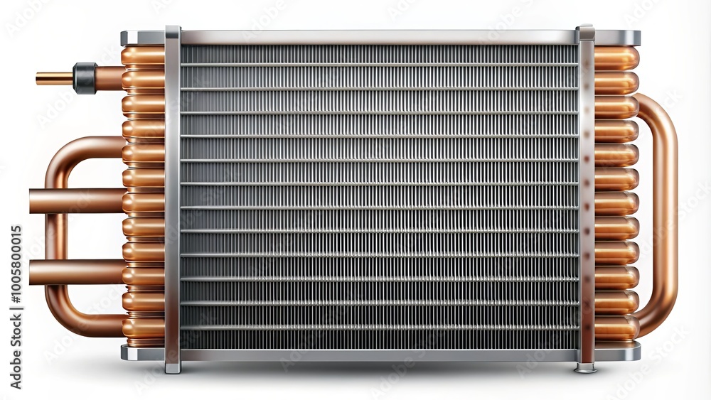 Stylish vector icon representing a ductless HVAC condenser coil, designed with copper or aluminum tubes and fins, #1005800015