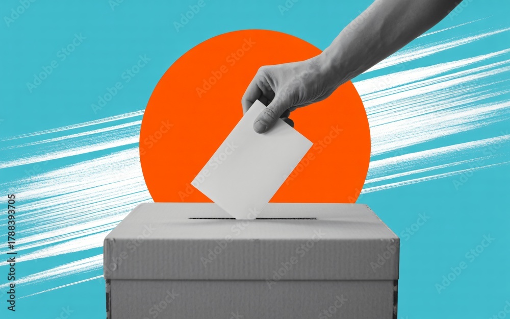 stylized illustration of hand voting in ballot box, political election and democracy concept, modern civic participation art #1788393705