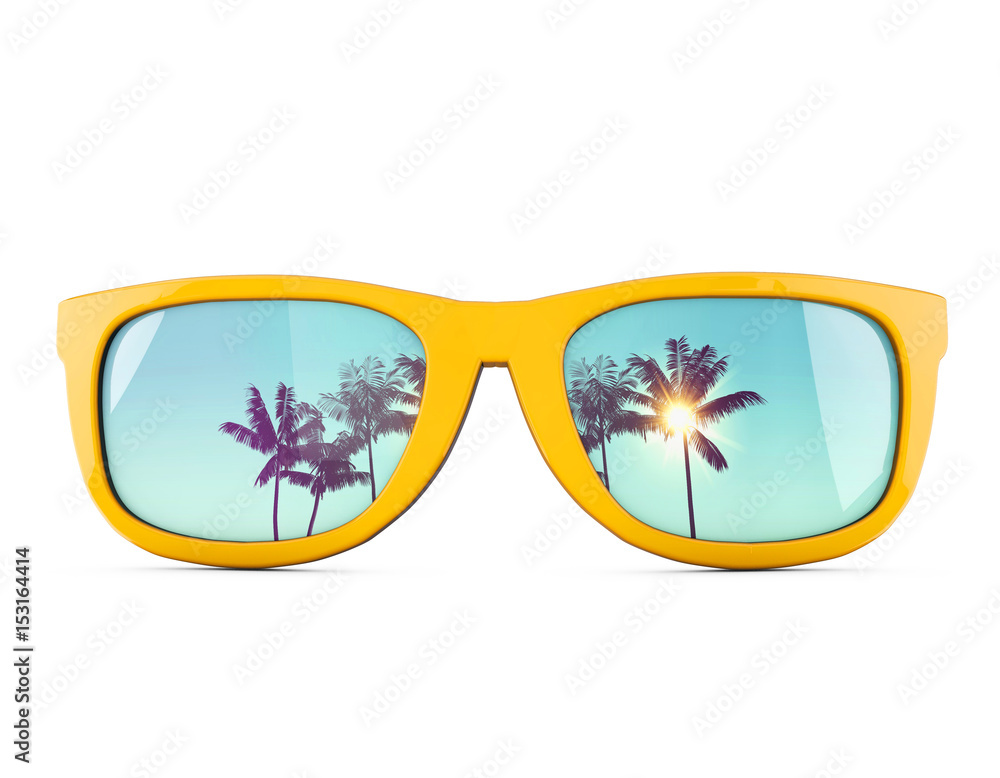 Summer sunglasses with tropical palm tree reflections. #153164414