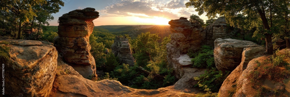 Summer Sunset Over Stunning Rock Formations in Garden of the Gods, Southern Illinois #1777187459