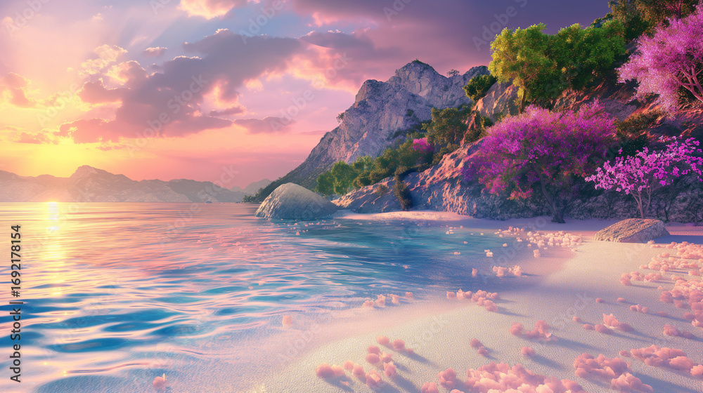 Sunrise or sunset on a beautiful beach. #1692178154