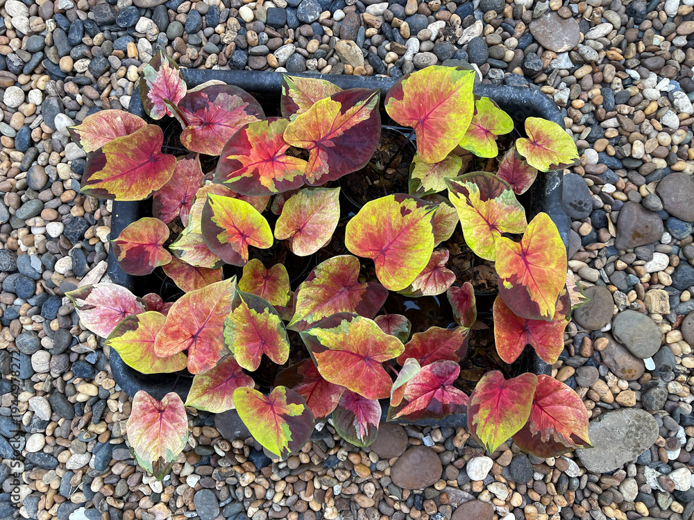 Sunset Sky is a highly popular Caladium known for its rapid growth and low-maintenance nature. With its breathtaking hues, it is a show-stopping plant that instantly brightens up any space #1944978272