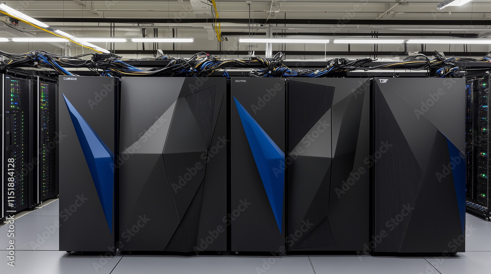 Supercomputer with Intricate Wiring and Advanced Cooling Systems, Processing Massive Information in Controlled Environment, Highlighting Complexity and Crucial Role with Shallow Depth of Field. #1151884128