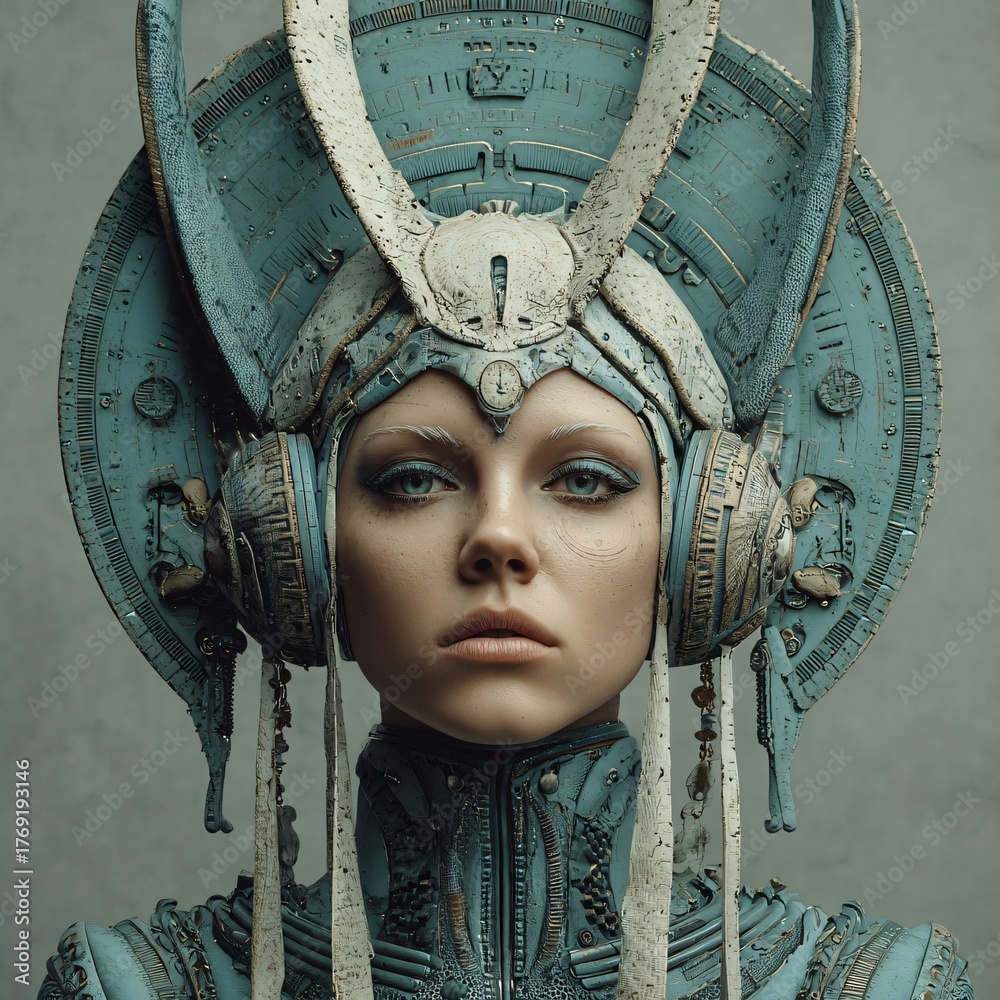 surreal alien headdress portrait, futuristic fantasy woman, mysterious creative female vision #1769193146