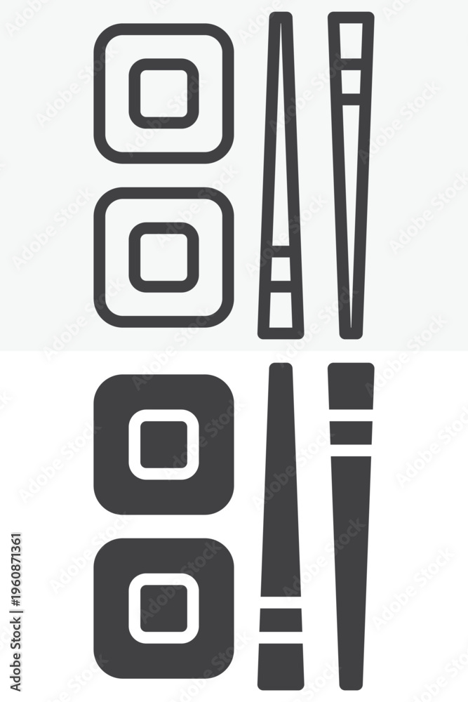 Sushi rolls with chopsticks icon in line and solid style. Outline and solid vector icon with editable stroke. Japanese food sign symbol, sushi icon. #1960871361