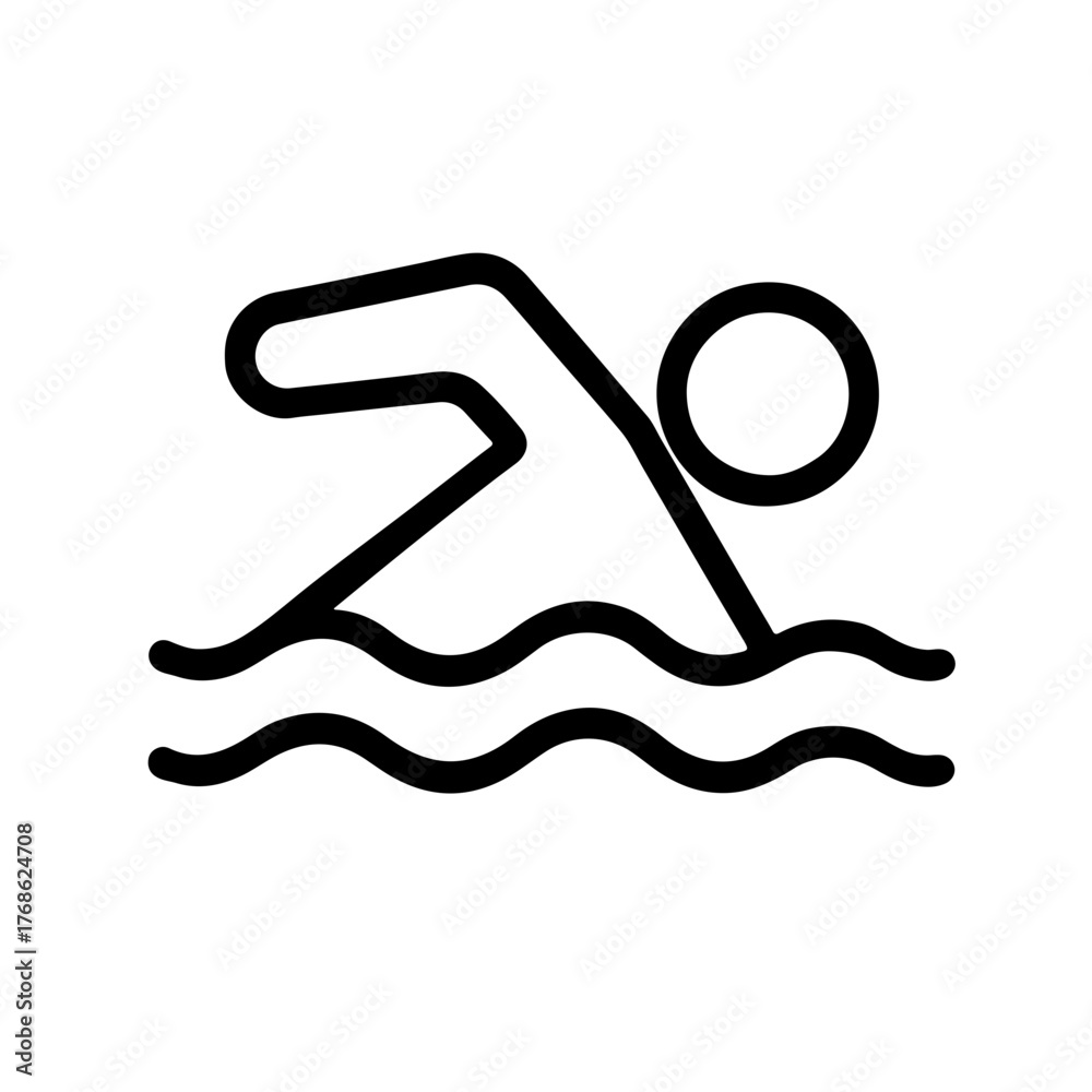 Swimmer Line Icon – Swimming Activity Symbol: Simple black outline icon of a person swimming. Great for sports apps, pool signage, and summer recreation designs. #1768624708