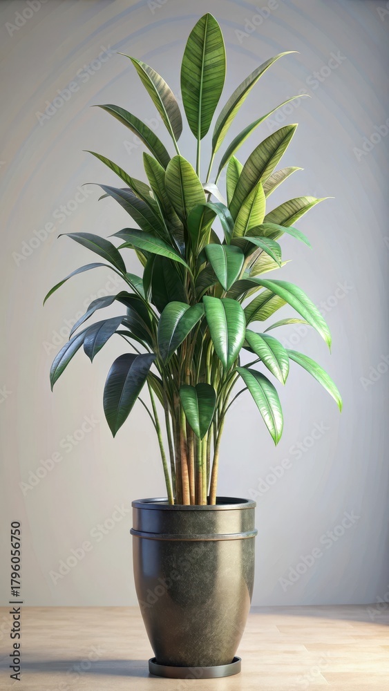 Tall indoor plant in large pot with soil and greenery #1796056750
