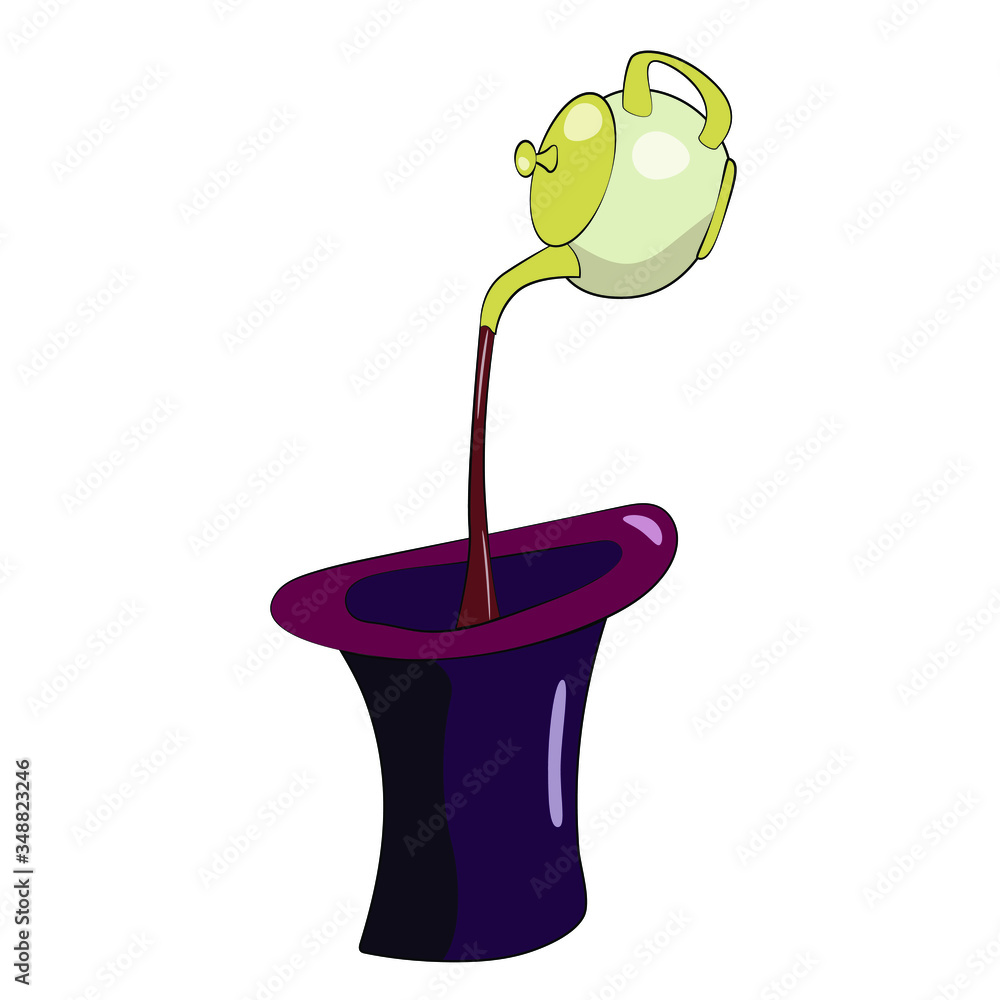 tea is poured into the cylinder from the kettle. mad Hatter's tea party. cute illustration #348823246