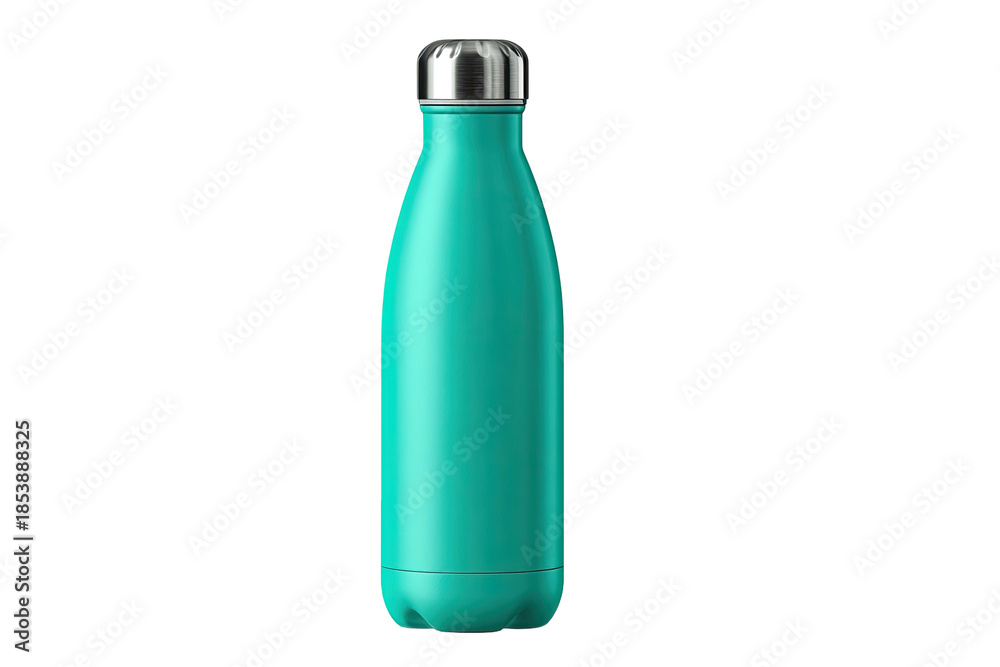 Teal canteen bottle w/ silver cap, set against a stark black backdrop #1853888325