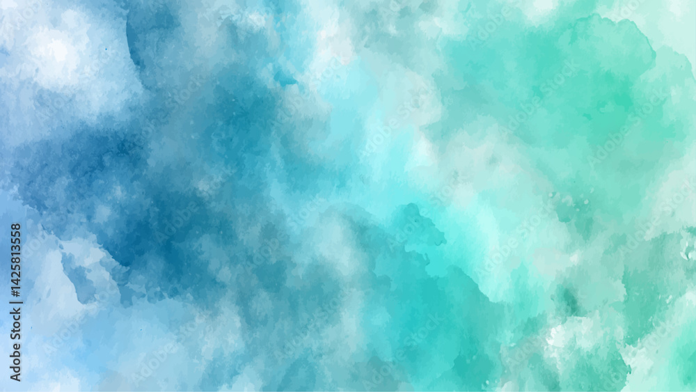 Teal watercolor sky background texture, blue sky, Vector background, blue green watercolor gradient bright light and glow texture background. #1425813558