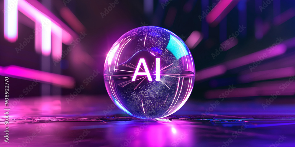 Technisches Hintergrundbild mit einer Kugel und AI Buchstaben #906922770