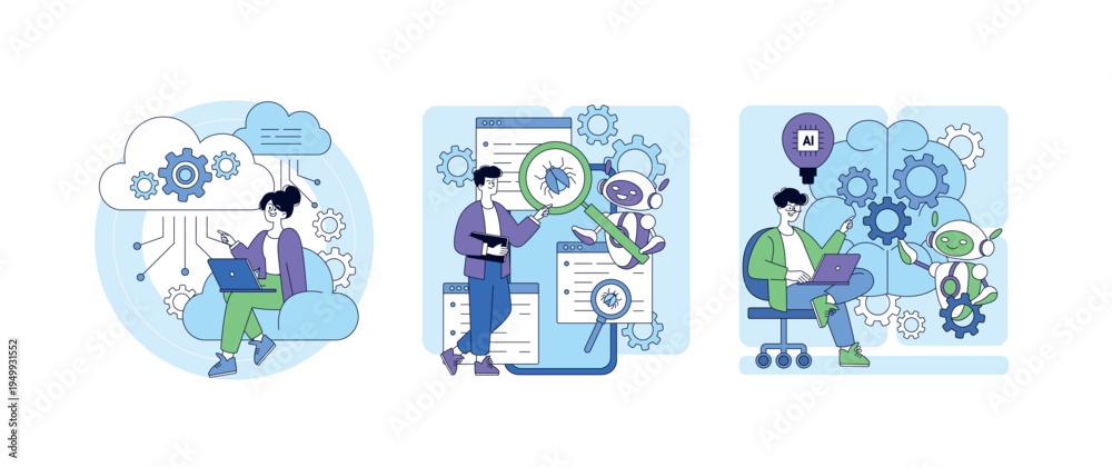 Technology Interaction and AI Vector Illustration Set #1949931552