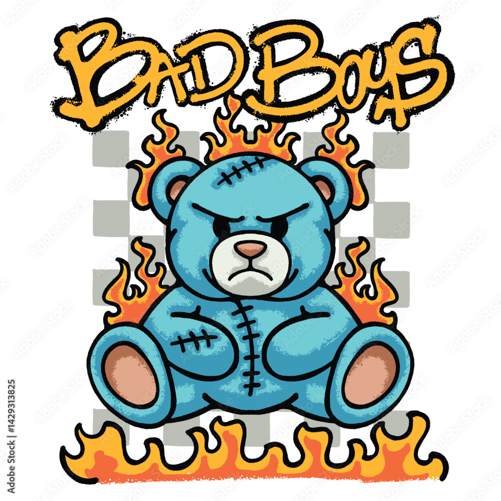 Teddy Bear with Flames Urban Streetwear Art #1429313825