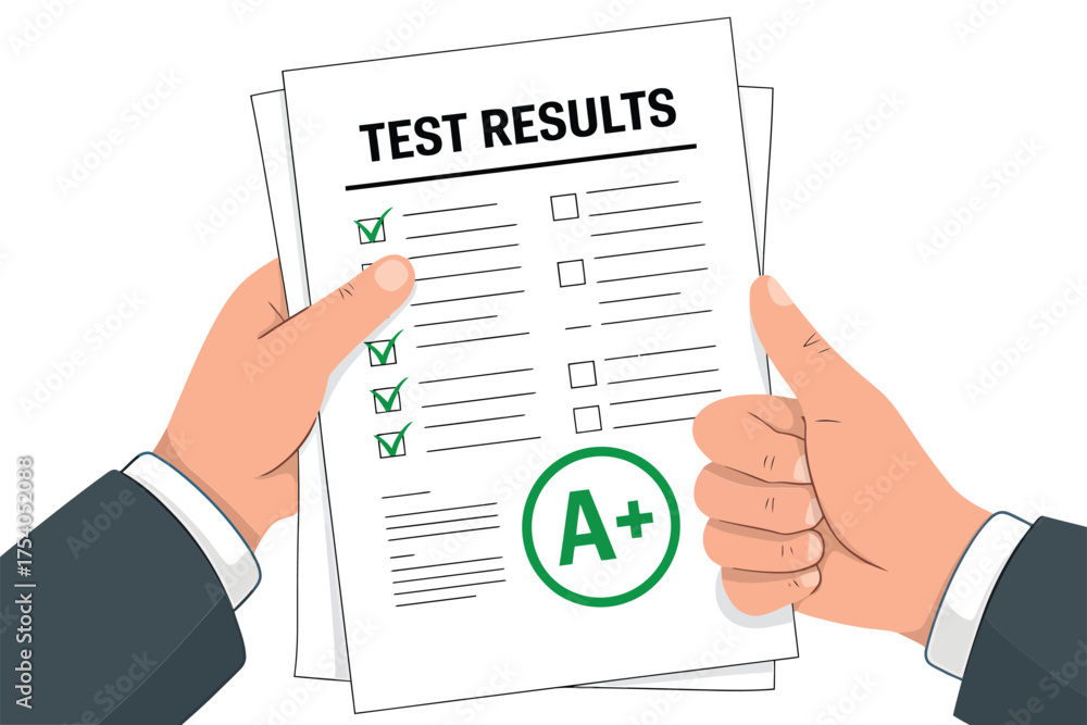Test result with a grade and thumbs up isolated on vector illustration for education, success, achievement, and evaluation on transparent background #1754052088