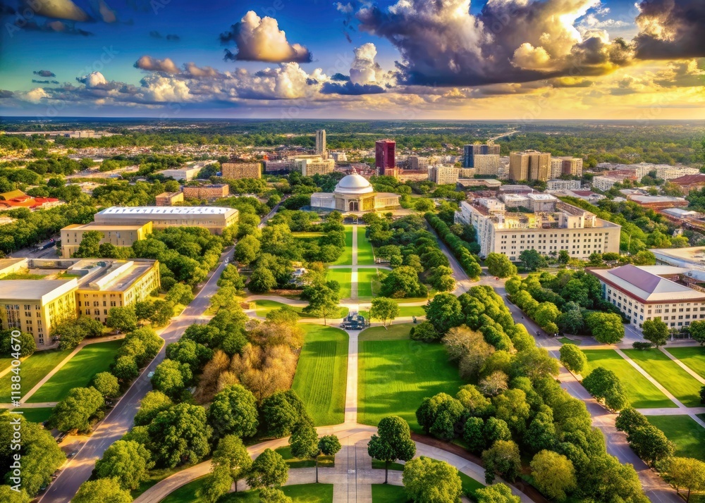 Texas A&M College Station: A high-definition aerial showcases detailed architecture nestled within lush, green surroundings. #1188404670