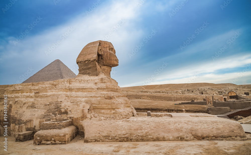 The Great Sphinx and pyramid of Khufu in Giza, Cairo, Egypt #1941961861