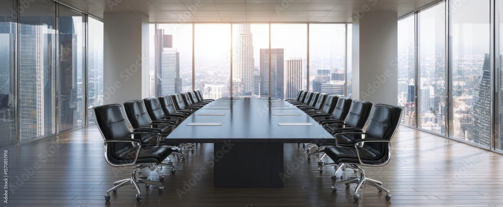 The modern boardroom with a breathtaking city view and sleek furniture. #1570851916