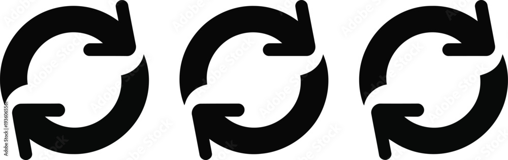 Three black circular arrows indicating continuous processes or cycles in a row Vector #1936065561