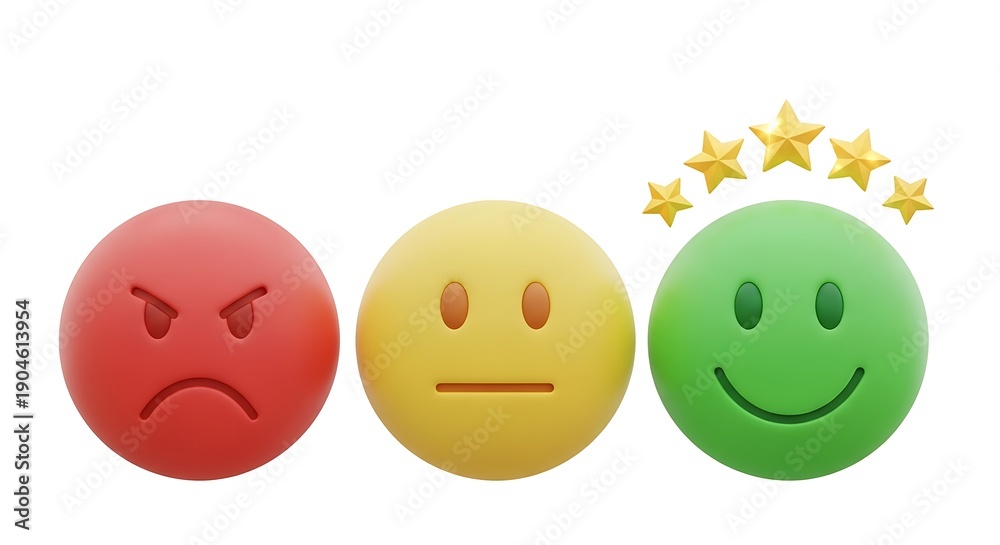 Three Emoticons Showing Anger Neutrality and Happiness with Stars emoji face #1904613954