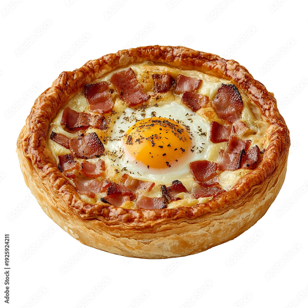 Traditional bacon and egg pie isolated on transparent background #1925924211