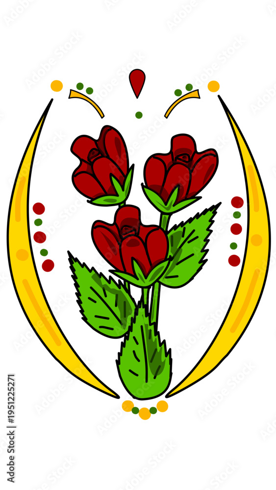 Traditional Vector Illustration of Red Roses with Ornamental Decorative Elements #1951225271