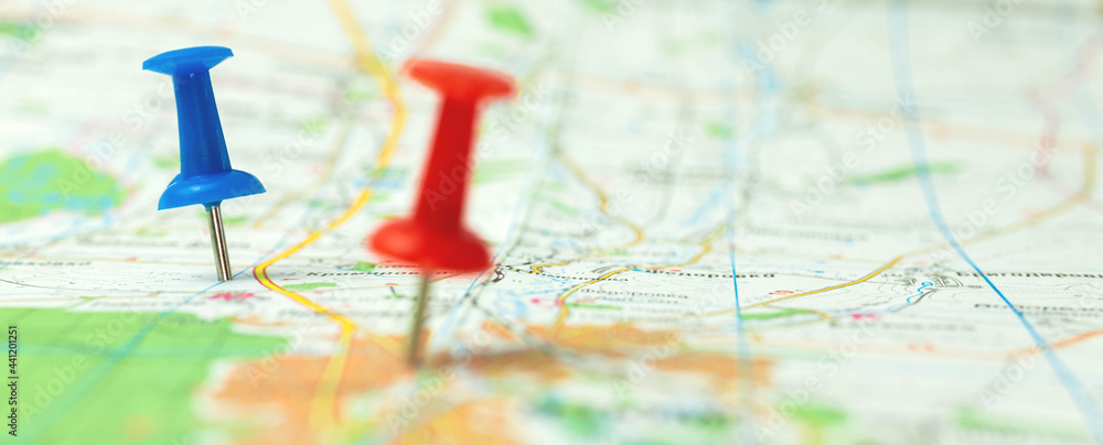 Travel pins on the map, banner world tourism background #441201251