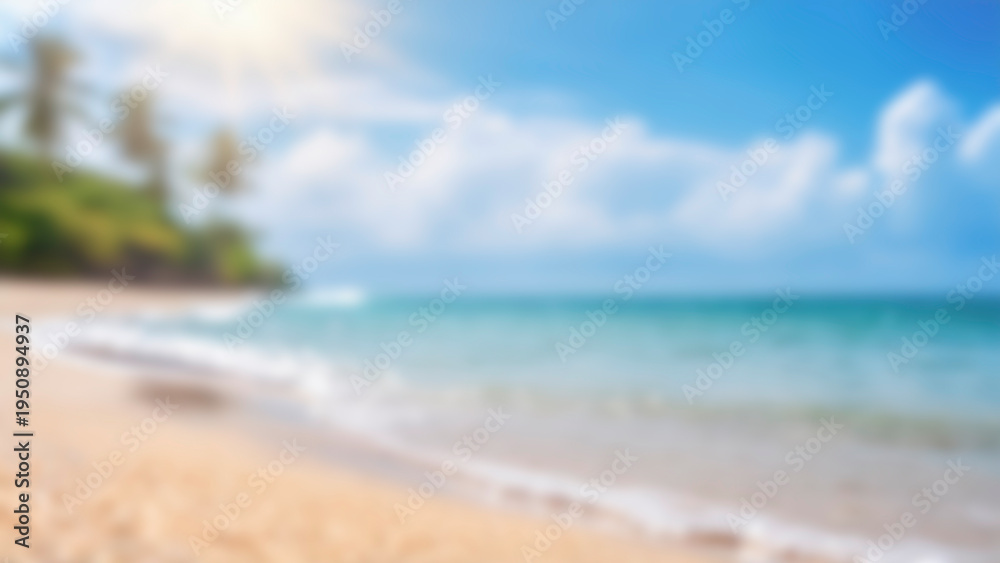 tropical beach with blue sky and clouds blur background #1950894937