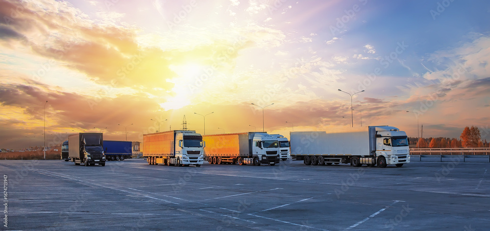 Trucks in parking lot on suburban highway #1674713947