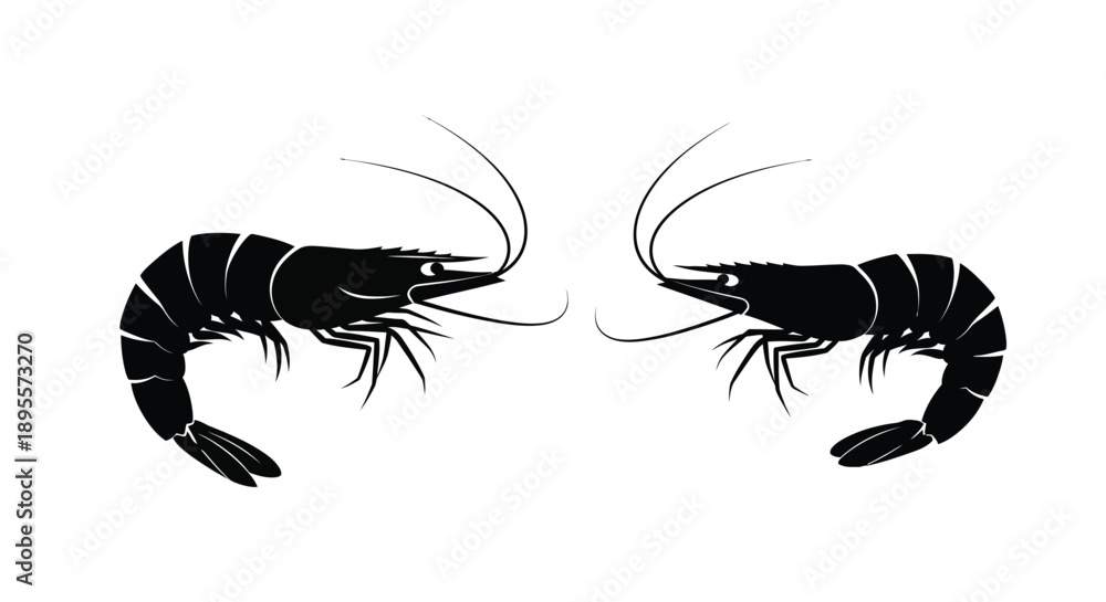 Two black shrimp facing each other in a simple graphic illustration #1895573270