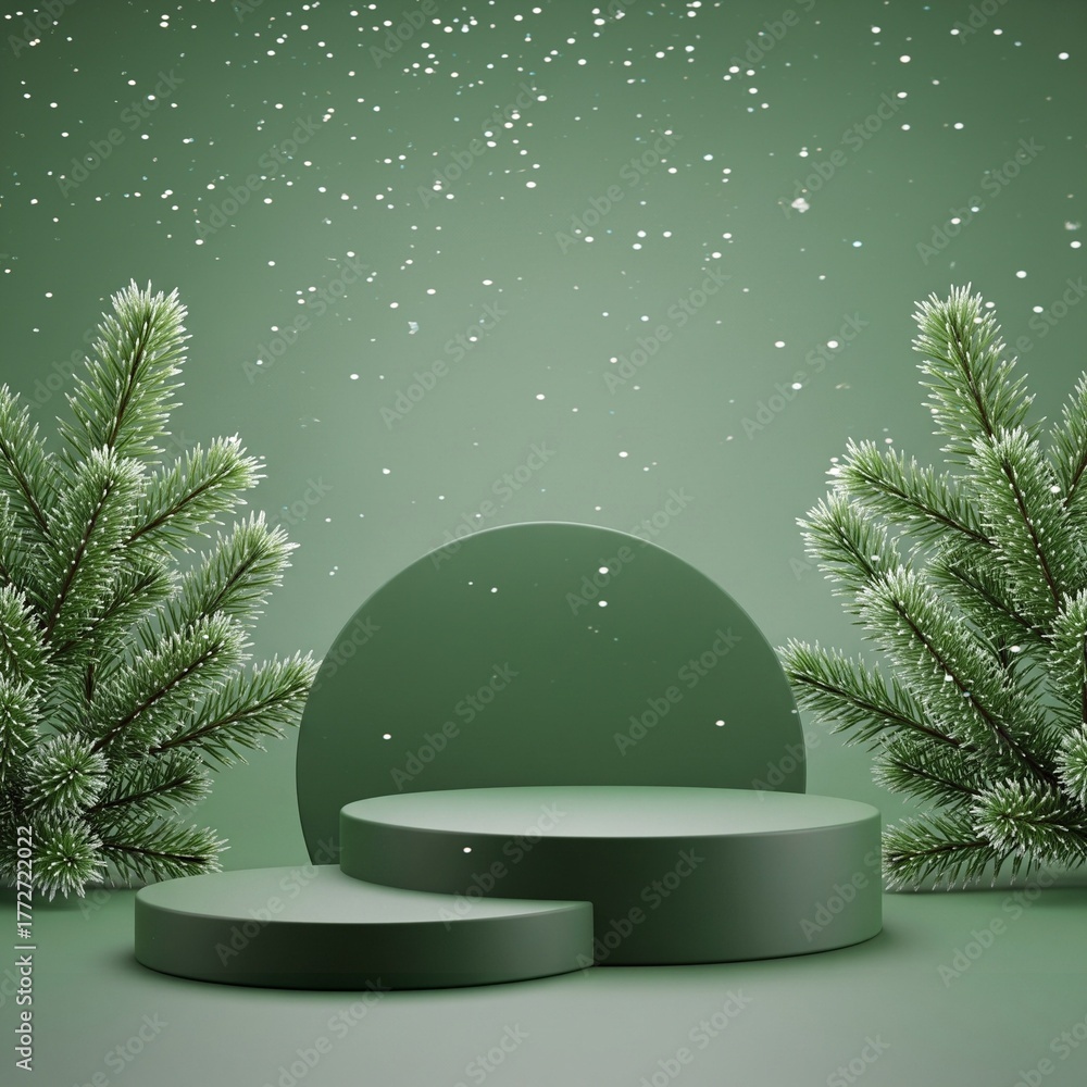 Two Christmas podium for products showcase, promotional sale, in green color #1772722022